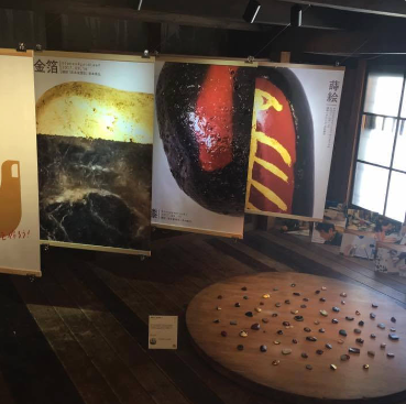 国宝・彦根城 築城410年祭の公募型彦根市滞在アートプログラム「HIKONE STUDENT ART AWARD」のグランプリ作品、彦根仏壇の技術を使った安田 泰弘 (Yasuhiro Yasuda)さんによる「究極の一石を投じる」をタクミドマにて展示します。セッティングいい感じです♪